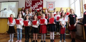 i A. Bezdziczkowi za przygotowanie młodzieży. Przypomniała również, że o godzinie 11.11 włączamy się w akcję „Niepodległa do Hymnu” i odśpiewamy wspólnie cztery zwrotki „Mazurka Dąbrowskiego”.