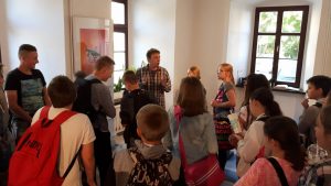 Dnia 1 czerwca 2017 r. z okazji Dnia Dziecka klasy 4-6 wraz z wychowawcami pojechały na wycieczkę do Gubina. Udaliśmy się na pływalnię, do Mc Donald’sa, a następnie ruszyliśmy w kierunku Gubińskiego Domu Kultury. Tam odwiedziliśmy Galerię Ratusz, w której kierownik Waldemar Pawlikowski pokazał nam wystawę pt. “Makroprzyroda” i bardzo ciekawie opowiadał o technikach malarskich. Dzieci miały okazję zadać pytania i posłuchać gry na gitarze, ponieważ pan Pawlikowski jest również utalentowanym kompozytorem i muzykiem. Potem poszliśmy do biblioteki miejskiej – oddziału dla dzieci, gdzie pani bibliotekarka Agnieszka pokazała nam księgozbiór i zapoznała z regulaminem wypożyczalni. Niestety, czas wycieczki dobiegał końca i musieliśmy wracać do Grabic. Pod szkołą czekała na nas miła niespodzianka – pani Dyrektor z lodami dla wszystkich dzieci, tych małych i “dużych”. To był udany dzień.