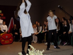 14 października, jak co roku, obchodziliśmy polskie święto oświaty. Po wspólnym odśpiewaniu hymnu pani Dyrektor złożyła życzenia nauczycielom i pracownikom szkoły, dziękując za trud włożony w wychowanie i nauczanie dzieci. Następnie uczniowie zaprezentowali program artystyczny, podczas którego nie zabrakło życzeń i piosenek związanych z tym szczególnym dniem. Najwięcej owacji wzbudził nietypowy pokaz mody nauczycielskiej, ponieważ w rolę modelek i modeli-pedagogów wcielili się uczniowie. Na zakończenie programu wszyscy nauczyciele i pracownicy szkoły otrzymali słodki upominek, a pani Dyrektor podziękowała dzieciom za przygotowanie uroczystości.