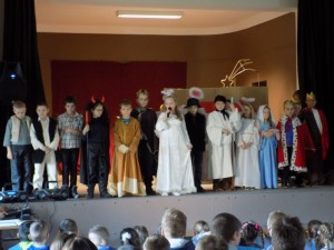 Dnia 21 grudnia 2016 r. odbyła się w naszej szkole uroczysta Wigilia. Na początku pani Dyrektor – Beata Skowron powitała społeczność szkolną, rodziców oraz zaproszonych gości, złożyła również wszystkim świąteczne życzenia i zaprosiła do obejrzenia jasełek, które wraz z wychowawczynią Gabrielą Nazaruk, przygotowali uczniowie klasy III. Dzieci z wielkim entuzjazmem zgłębiały tajemnicę nocy betlejemskiej i odważnie wcielały się w grane postacie – nie zabrakło diabła, Świętej Rodziny, trzech króli, aniołów i Heroda. Całości dopełniła oprawa muzyczna zespołu „Co Ty na to” oraz kolęda „Cicha noc” w wykonaniu Oli Łojko. Aktorzy i wokaliści zostali za swój występ nagrodzeni gromkimi brawami. Po występach w wigilijną atmosferę wprowadził wszystkich fragment Ewangelii odczytany przez księdza Krzysztofa Korcza. Następnie uczniowie wraz z wychowawcami i rodzicami udali się do swoich klas, gdzie przy pięknie przygotowanych stołach podzielili się opłatkiem i spożyli wigilijne potrawy