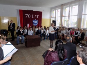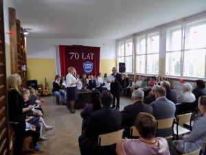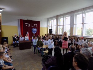 „Cieszę się, że przyjęliście Państwo nasze zaproszenie, i że będziecie Państwo w dniu dzisiejszym z nami. W to dzisiejsze święto wzruszają się nawet zacne, szkolne mury – bo oto spotkanie, które łączy w sobie zapisane kartki 70-letnich wydarzeń szkoły.” – tak dyrektor szkoły Beata Skowron rozpoczęła przemówienie, podczas którego przybliżyła również historię szkoły, podziękowała za współpracę. „Szczególne podziękowania kieruję do, wspaniałych pedagogów, którzy tworzyli historię szkoły i dorobek wielu pokoleń, Pragnę wyrazić uznanie dla każdego wysiłku wszystkich  dyrektorów tej szkoły,  nauczycieli;  dla byłych i obecnych pedagogów, pracowników szkoły, dla wszystkich rodziców i absolwentów – za wszystko co powstawało i powstaje – za wspólne działania dla dobra uczniów i całego środowiska”. Słowa podziękowania skierowane były również do Wójta Gminy Gubin pana Zbigniewa Barskiego, Radnych Gminy, Kierowników Jednostek Organizacyjnych oraz sołtysów za pomoc, ofiarność i zrozumienie. Podziękowania płynęły do wszystkich tych, którzy poprzez swoją obecność, niezależnie od czasu i okoliczności, tworzyli historię tej szkoły na przestrzeni 70 lat, pozostawiając jakąś cząstkę siebie już na zawsze w szkole w Grabicach. Dyrektor szkoły na koniec wystąpienia życzyła wszystkim, aby ten jubileuszowy dzień zapisał się trwale w dobrych wspomnieniach. Po wystąpieniu pani dyrektor,  głos zabrali przybyli goście: Wójt Gminy Gubin Pan Zbigniew Barski, radny powiatu krośnieńskiego Pan Roman Sikora, radny Gminy Gubin Pan Marian Adamczyk oraz dyrektorzy szkół gminnych, składając gratulacje z okazji tak pięknego jubileuszu życząc jednocześnie wielu sukcesów dydaktycznych i wychowawczych. Uroczystość uświetniły występy uczniów: scenki szkolne, występy wokalne i taneczne. Uroczystości uwieńczył pyszny tort oraz wspólne okolicznościowe zdjęcia. Potem były spotkania przy kawie, zwiedzanie szkoły oraz zapoznawanie się z historią szkoły, podziwianie starych zdjęć, kronik, dokumentów.