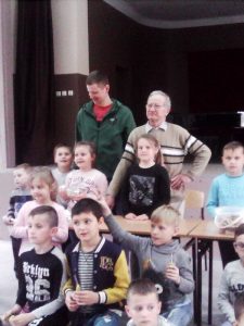 Przybyli do szkoły goście bardzo ciekawie opowiadali o pszczołach i ich zwyczajach, ulach ,miodzie i narzędziach wykorzystywanych przez pszczelarzy. Uczniowie mogli spróbować miodowe plastry oraz własnoręcznie zrobić świeczkę z pszczelego wosku.