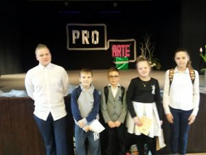 22 marca 2018 roku w Gubińskim Domu Kultury odbył się przegląd umiejętności recytatorskich ,,PRO ARTE’’. Szkołę Podstawową w Grabicach w eliminacjach rejonowych reprezentowały następujące osoby: Krystian Data, Aleksandra Łojko, Maciej Szulc z klasy IV oraz Dorota Naglik z klasy V. Przedstawicielem gimnazjalistów był Krzysztof Harbaruk z klasy II. Wszyscy uczniowie wykazali się niezwykłą wrażliwością na piękno poezji polskiej . W kategorii klas IV – VI spośród 29 recytatorów wyróżnienie otrzymała Aleksandra Łojko. Gratulujemy i życzymy dalszych sukcesów!