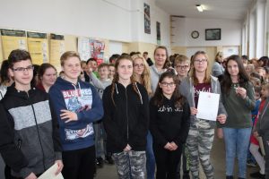 w Olimpiadach Pierwszej Pomocy, zajmując przy tym czołowe miejsca zarówno na szczeblu rejonowym jak i wojewódzkim. Szkolne Koło PCK i Wolontariat działają tak prężnie, dzięki wielkiemu zaangażowaniu naszych nauczycieli. Szczególnie chcę podziękować za poświęcenie, pracę społeczną i charytatywną, czas spędzony z uczniami poza lekcjami Pani Beacie Naruszewicz oraz Panu Mateuszowi Sokalskiemu, który wspiera nas również w tych działaniach. Odznaka ta, to zasługa całej społeczności szkolnej, której przyświecają słowa Wielkiego Polaka Jana Pawła II „Człowiek jest wielki nie przez to, co posiada, lecz przez to kim jest; nie przez to, co ma, lecz przez to, czym dzieli się z innymi”