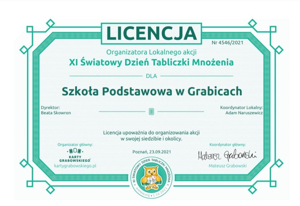 1 października 2021 roku odbędzie się w naszej szkole Światowy Dzień Tabliczki Mnożenia.