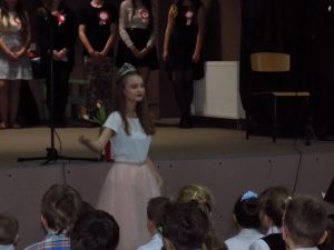 Na koniec pani dyrektor podziękowała artystom za program artystyczny, a M. Budzianowskiej, A. Bezdziczkowi za przygotowanie młodzieży. Przypomniała zgromadzonym o tym, że nigdy nie należy zapominać o dziejach naszego kraju, o polskiej tradycji i kulturze. Występ został nagrodzony gromkimi brawami.