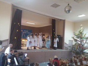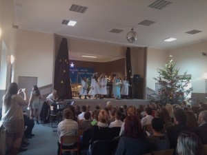 Muzyka zawsze jest nieodłącznym elementem obrządków i uroczystości. Dlatego szkolny chór pod kierunkiem pani Katarzyny Sitek i Artura Bezdziczka, ku czci Dzieciątku Bożemu, poświecił kilka pieśni-tradycyjnych polskich kolęd. Otoczeni świąteczną atmosferą i urzeczeni nieprzemijającym pięknem znanych melodii można było się poczuć naprawdę wyjątkowo.
