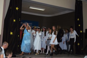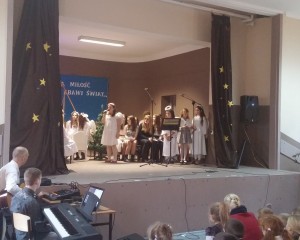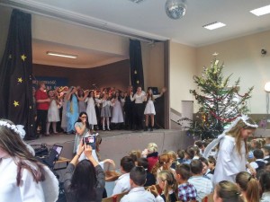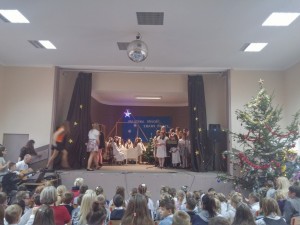 Mądre słowa płynące ze szkolnej sceny uświadomiły nam, dlaczego co roku z taką dziecinną ufnością czekamy na Boże Narodzenie. Narodziny Jezusa w betlejemskiej stajence wzbudzają w każdym z nas tęsknotę za bardziej ludzkim światem, w którym miłość jest silniejsza od nienawiści, a światło rozprasza ciemność. Finałowa piosenka ,,Przekażmy sobie znak pokoju’’ zgromadziła na scenie ponad czterdziestoosobową grupę wykonawców.