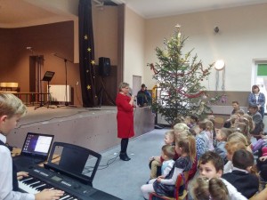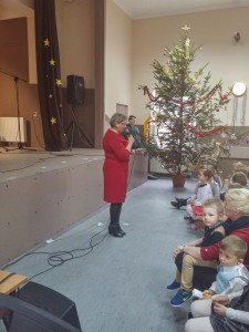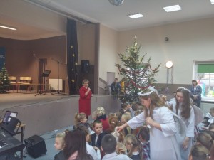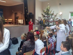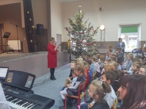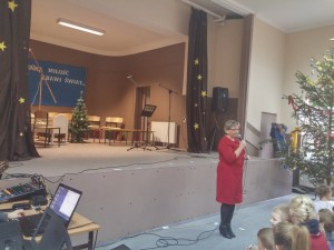 Po części artystycznej Pani Dyrektor Beata Skowron podziękowała młodym artystom i ich opiekunom Pani Małgorzacie Budzianowskiej oraz Katarzynie Sitek i Arturowi Bezdziczkowi za przygotowanie interesującej akademii. Następnie Pani Dyrektor złożyła wszystkim uczestnikom spotkania najserdeczniejsze życzenia bożonarodzeniowe oraz pomyślności w Nowym 2016 Roku.