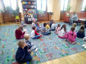 sposób wypożycza się książki, jak należy dbać o książki i przeczytała dzieciom kilka bajek. Na koniec