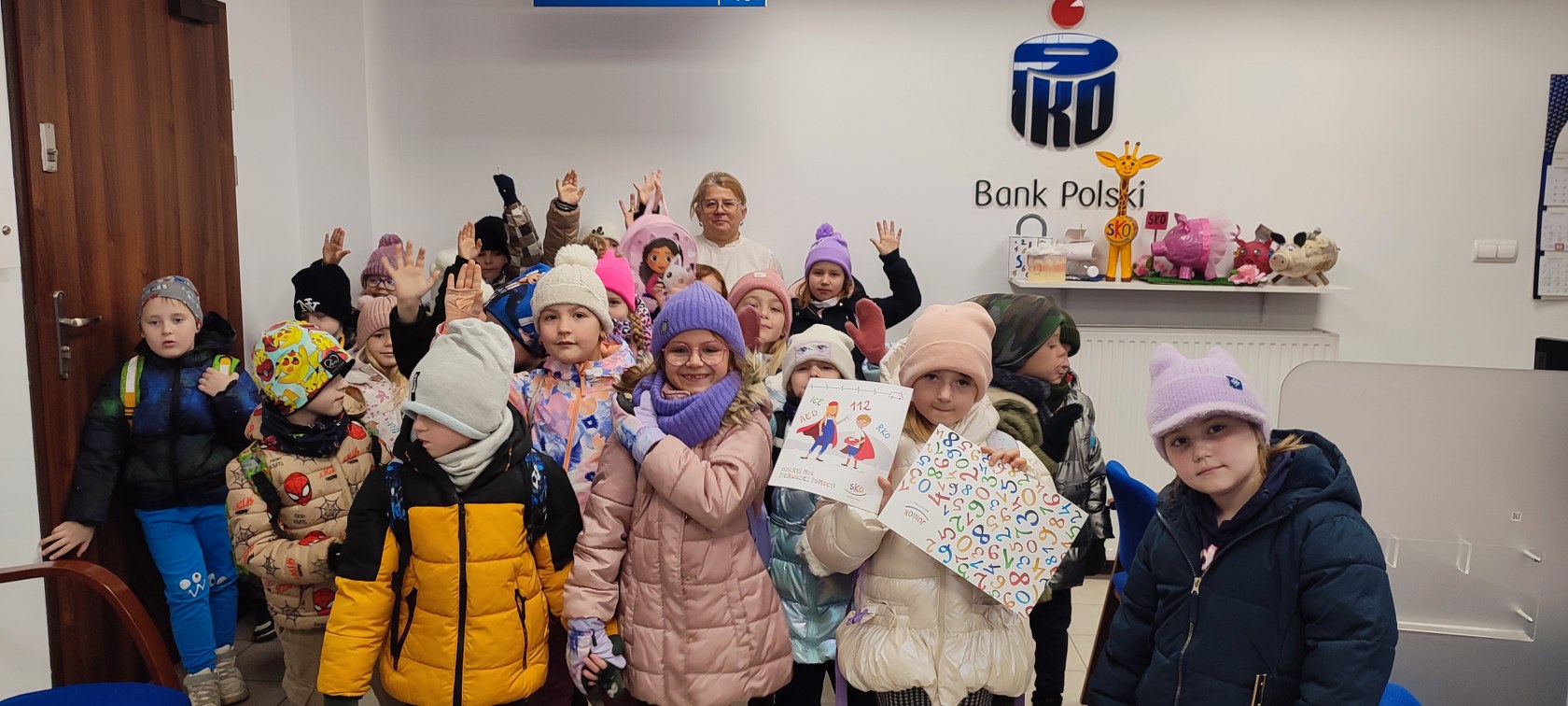 Uczniowie klas I – III wraz z wychowawcami udali się na wycieczkę do PKO Banku Polskiego w Gubinie. Celem wyjazdu było poznanie pracy banku, utrwalenie wiedzy na temat oszczędzania oraz zapoznanie uczniów z zasadami bezpiecznego korzystania z pieniędzy. Po przybyciu na miejsce grupę powitała pani dyrektor Teresa Hudec, która oprowadziła dzieci po najważniejszych pomieszczeniach placówki. Uczniowie mieli okazję zobaczyć stanowiska obsługi klientów. Duże zainteresowanie wzbudziły różne rodzaje kart płatniczych oraz urządzenia używane przez pracowników banku podczas codziennej pracy. Podczas krótkiej prezentacji dzieci dowiedziały się, jak działa konto bankowe, czym jest oszczędzanie oraz dlaczego warto odkładać pieniądze na przyszłość. Pracownicy banku w przystępny sposób wytłumaczyli, jak bezpiecznie posługiwać się pieniędzmi i czego unikać, aby nie paść ofiarą oszustwa. Uczniowie zadawali wiele ciekawych pytań, na które chętnie udzielano odpowiedzi.