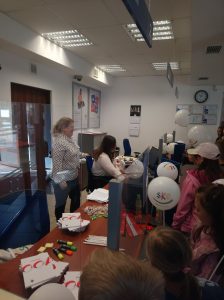w ramach ogólnopolskiego programu edukacyjnego „Szkolne Kasy Oszczędności”. Dzieci zapoznały się z zasadami funkcjonowania banku, obsługą klienta, urządzeniami ułatwiającymi pracę bankowca oraz ze sposobami zabezpieczania banknotów.