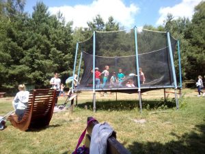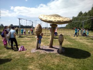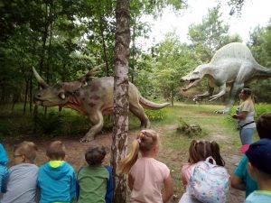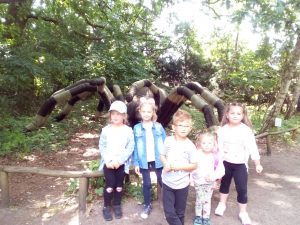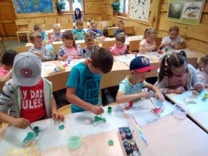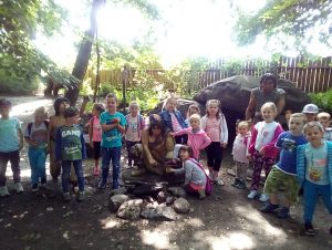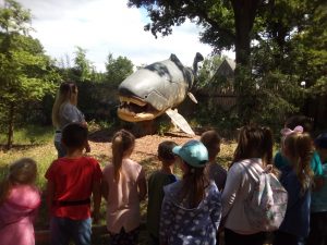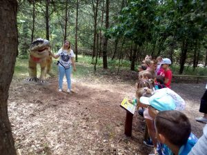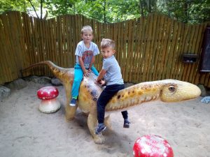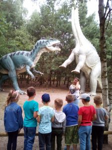 Dnia 14.06.2018r. przedszkolaki wyruszyły na wycieczkę do Parku Dinozaurów w Nowinach Wielkich. Po przyjeździe czekały na dzieci ciekawe zajęcia opowiadające o tym jak kiedyś żyły dinozaury i o tym jak teraz wydobywa się ich szkielety. Dzieci dostały z gipsu figurkę dinozaura i muszelki, które malowały farbami i zabrały do domów. Po zajęciach pani przewodnik oprowadziła nas po całym parku pokazując i opowiadając o dinozaurach. Następnie zrobiliśmy sobie przerwę na obiadek, który jedliśmy na świeżym powietrzu i po krótkiej przerwie dzieciaki ruszyły na place zabaw. Zmęczeni ale szczęśliwi wróciliśmy do domów.