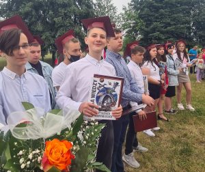 W piątek 25 czerwca 2021 roku w Szkole Podstawowej w Grabicach odbyła się uroczystość zakończenia roku szkolnego. Po mszy świętej Pani Dyrektor Beata Skowron powitała zgromadzonych uczniów i Rodziców, podziękowała za owocną współpracę w tym roku szkolnym, szczególnie podczas nauki zdalnej. Jako pierwsi świadectwa ukończenia szkoły