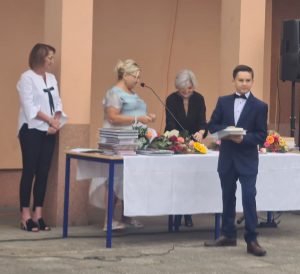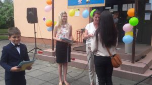 i nagrody książkowe otrzymali absolwenci. Młodzież dziękując za trud wychowania, pożegnała się ze szkołą przemówieniem i pięknymi kwiatami. Uczniom z najwyższą średnią ocen wręczone zostały stypendia Rady Gminy Gubin. Następnie nagrody i wyróżnienia otrzymali uczniowie z pozostałych klas. Na zakończenie Dyrektor Szkoły życzyła absolwentom sukcesów edukacyjnych w nowych szkołach, a wszystkim udanych i bezpiecznych wakacji.